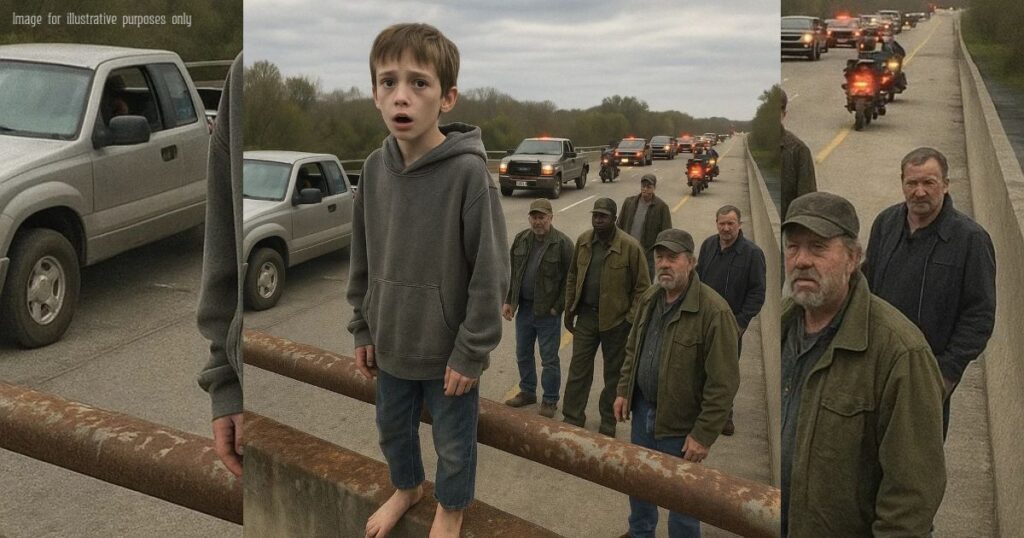 Twenty-three veterans parked their trucks sideways across an interstate bridge because an eleven-year-old boy was clinging to the wrong side of the railing, and because the man who had driven him there was already circling back for more children.