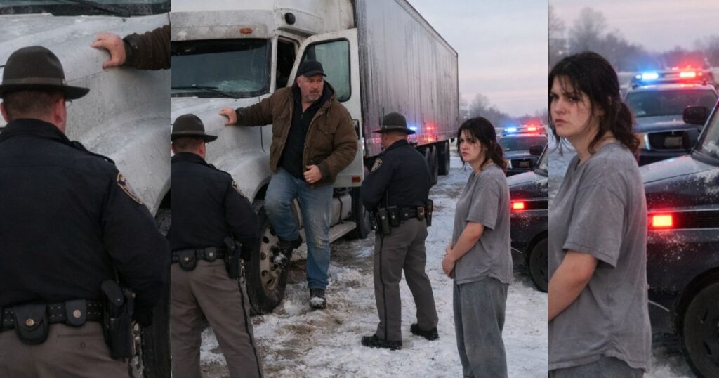 State troopers boxed in my rig at dawn after I let a freezing mother sleep inside—but the question they asked made my blood go cold.