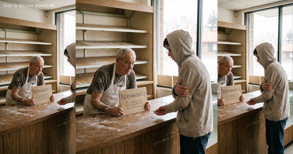 A kid walked in. Maybe sixteen. Hood pulled up tight, backpack dragging on the floor like it was filled with bricks. He didn’t look at me. He just stared at the cookies in the case.
