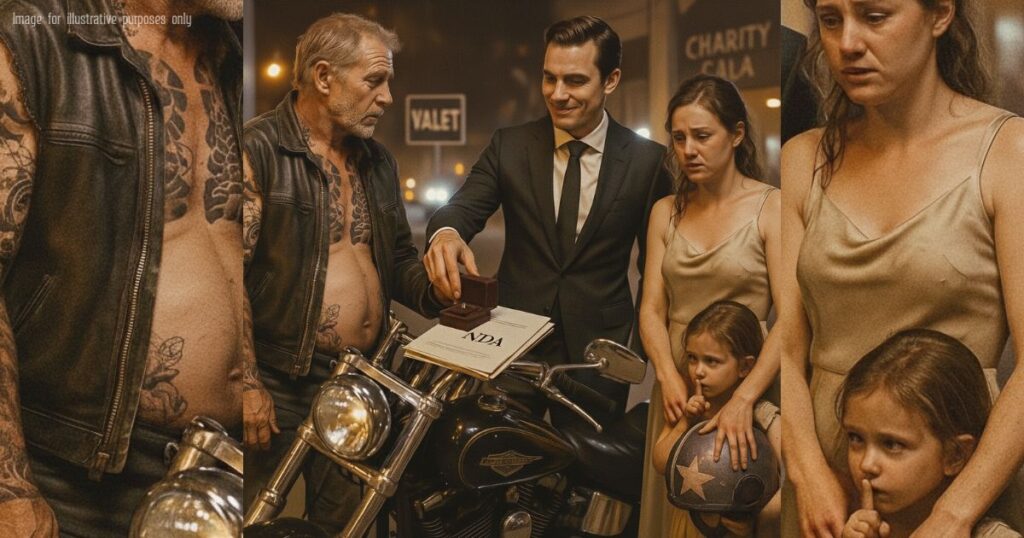 He set a velvet box on my Harley’s tank like it belonged there and slipped a packet of papers under the bungee cord. “Sign the NDA, Ray,” he said, smiling the kind of smile that has publicists on retainer. “Or you lose access to Maya tonight. Clean break. Your choice.”
