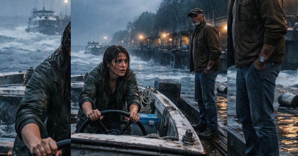 The wheel jerked in her hands as a wave slapped the hull sideways. Rain hammered the windshield so hard the world beyond it looked like it was dissolving.