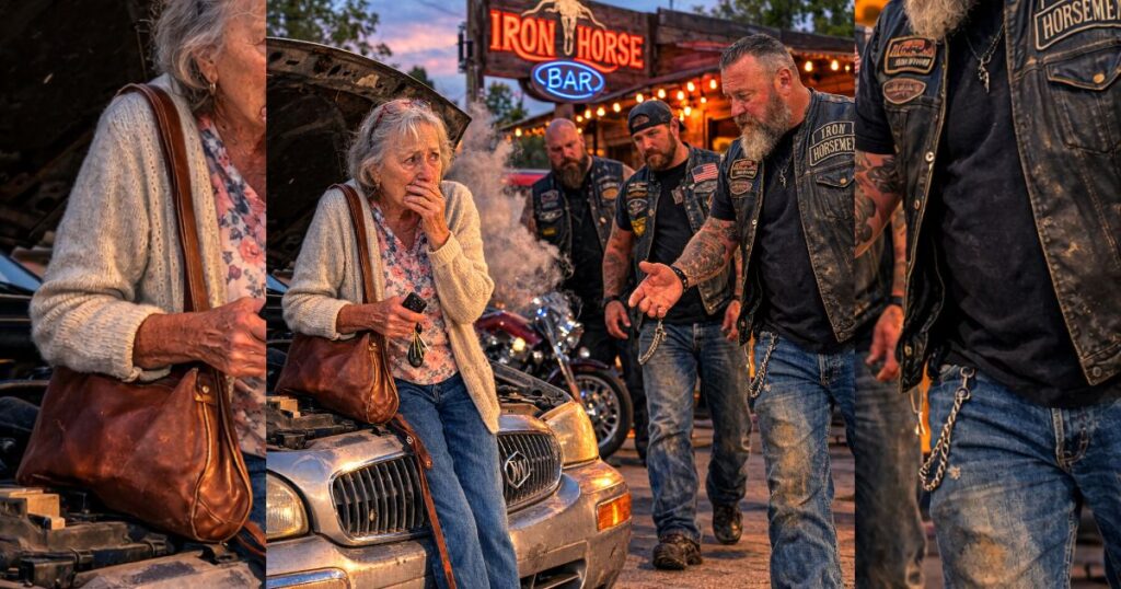 Her old sedan gave one last hard shudder, coughed out a cloud of steam, and rolled to a dead stop right under the crooked metal sign outside The Iron Horse.