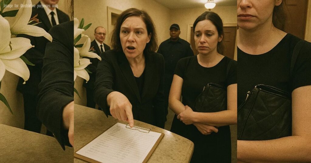 The funeral home smelled like lilies and furniture polish, the kind of clean that tries to hide grief. I stood at the front desk in my black suit, scanning the guest list like it was something I could edit.