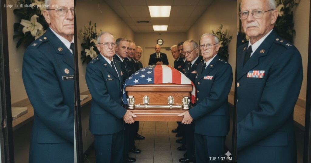 Names spoken. A verse read. Silence held like a formation that knows when to breathe. The bugler didn’t play; this wasn’t that service yet. The folded flag stayed on the table, waiting for the right pair of hands.