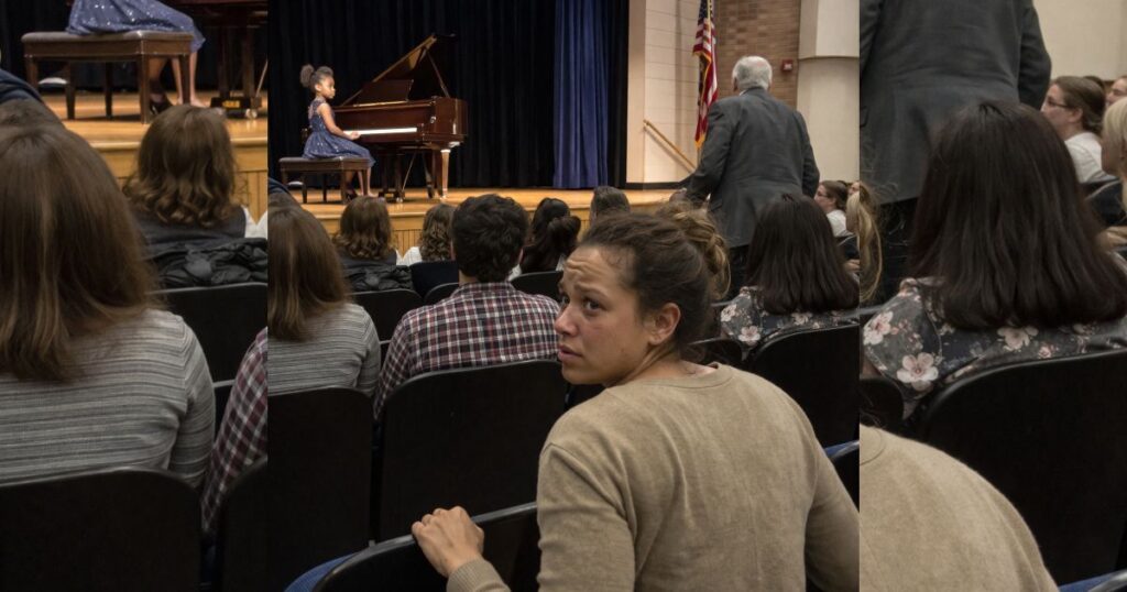 My daughter bowed exactly the way we practiced in our living room, one hand smoothing the front of her old blue dress, chin dipping low, shoulders squared even though I knew she was scared. The last note of her song was still hanging in the school auditorium when she looked up, waiting for something to come back to her.