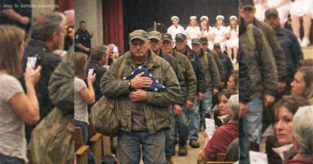 The security guard took another step forward, uncertainty flashing across his face. He wasn’t sure if he was supposed to escort the veterans out or stand at attention. The folded flag had turned the whole room into a question.