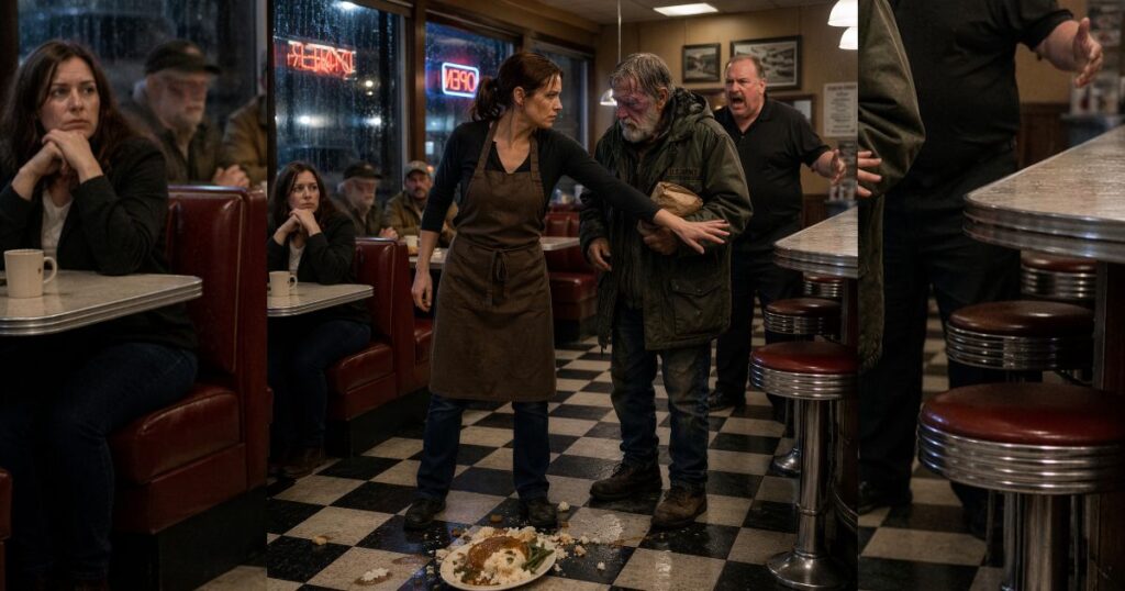 Then she took the plate she had meant to carry to booth six, set it back in front of the old man, and said, quiet and clear enough for the whole room to hear, “Please eat while it’s warm.”