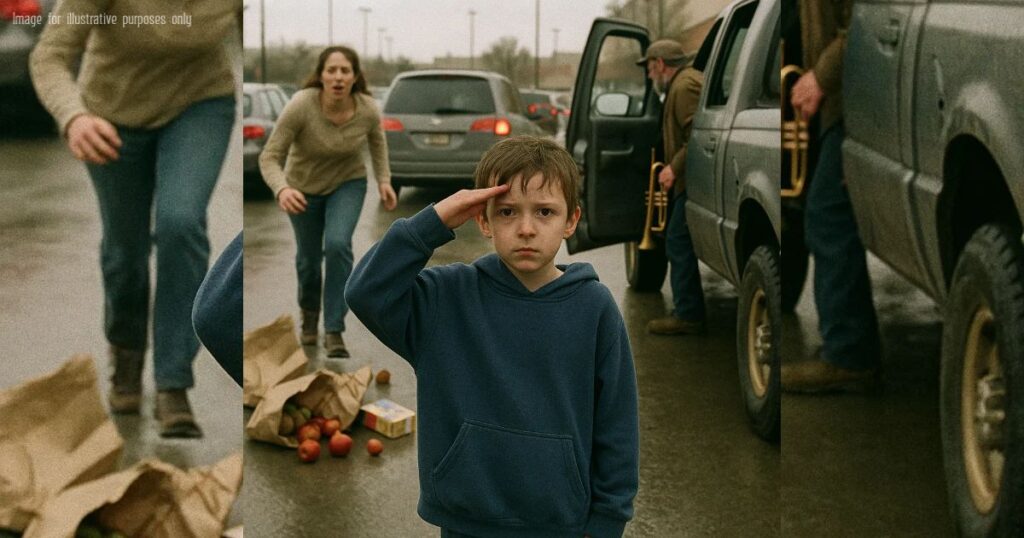 Up close, I could see dark circles under her eyes and the cheap name badge still pinned to her shirt from an early shift somewhere that smelled like disinfectant and coffee. The boy leaned into her hip but kept staring at the bugle, shoulders trembling with effort, his fingers twitching like he wanted to salute again and wasn’t sure if he was allowed. I heard myself ask, “What’s his name?” even though she had already shouted it across the lot.