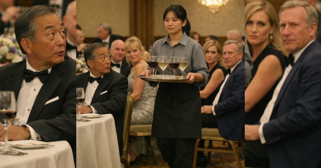 They Mocked the Quiet Banquet Server Carrying Wine Until a Japanese Billionaire Heard Her Speak, Stopped the Room Cold, and Turned One Night of Humiliation Into a Reckoning Nobody Saw Coming