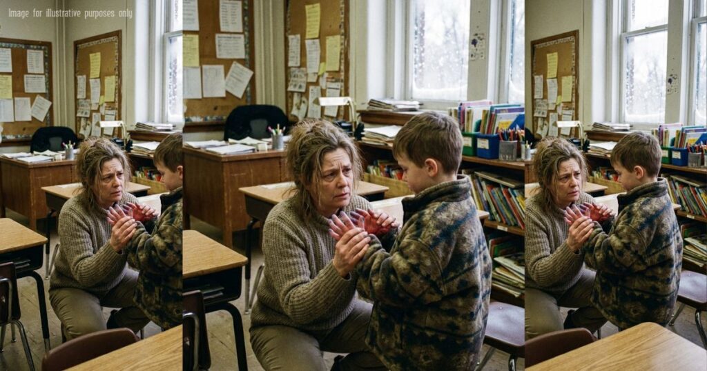 The kids are arriving in a tidal wave of small bodies and wet boots. They smell like cold air and cheap cereal. Jayden is first in, as always, shoulders hunched, eyes scanning the room like he’s checking for danger.