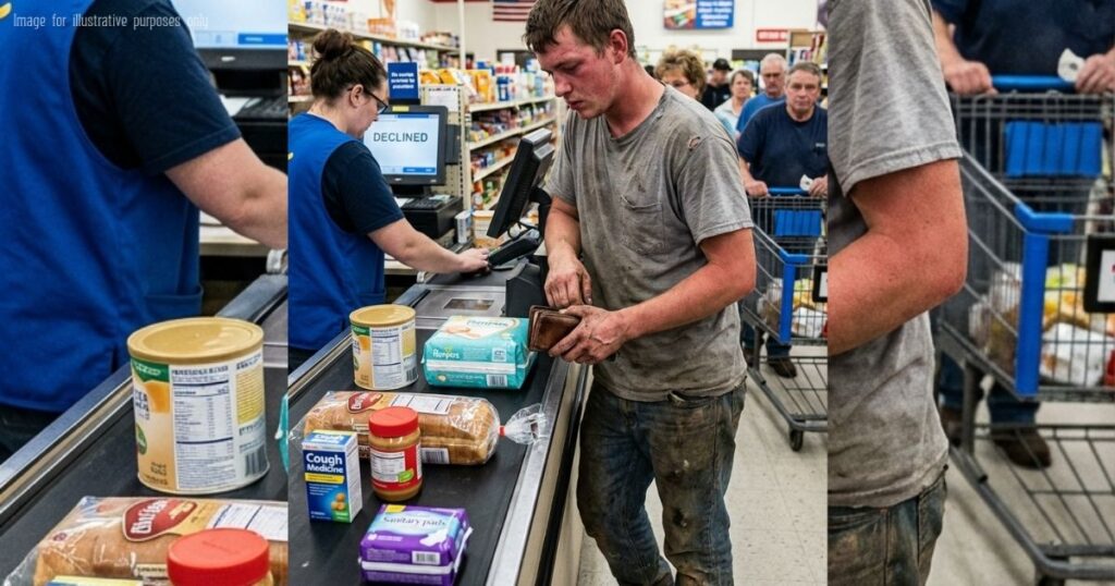 The young father’s card kept getting declined for baby formula and diapers, and nobody in line knew his wife was home bleeding.