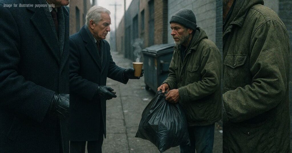A veteran meets his old comrade searching for food in a dumpster—7:10 a.m., November 11, 2025, West 25th Street, Cleveland; James Hollis recognizes Eduardo Ruiz, who saved him in 1969, as a bent dog tag cuts his palm.