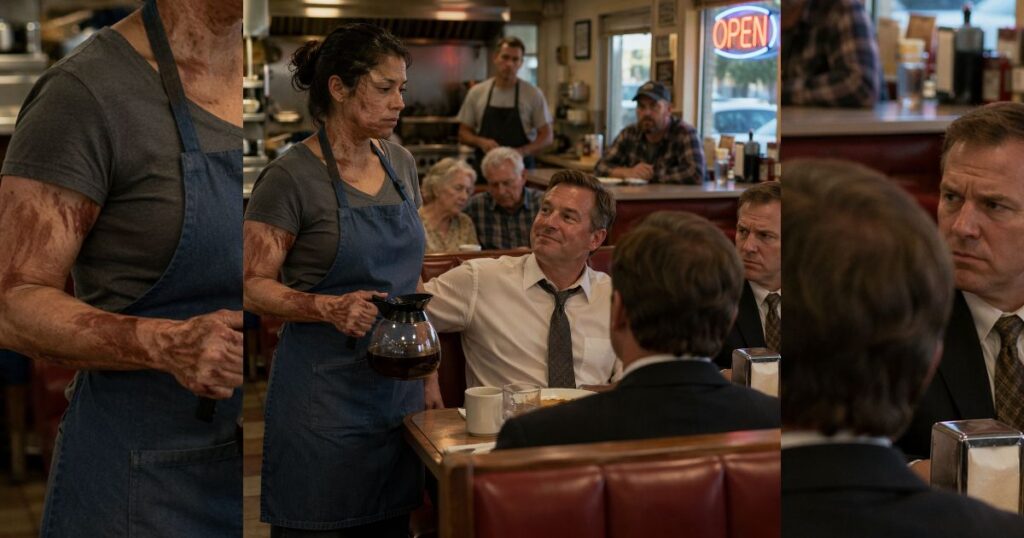 The Man in the Corner Booth Looked at Her Scars and Said She Belonged Hidden in the Back, but Before the Next Sunrise, a line of Marines wrapped around the diner to honor the woman he had mocked.