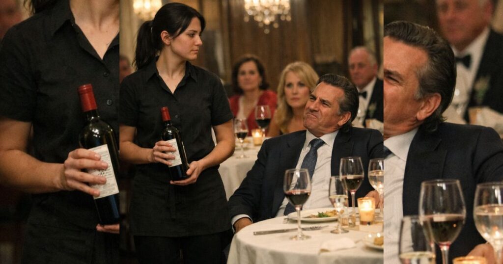 They Mocked the Quiet Waitress for Carrying Their Bordeaux, but When Three Men Stormed In With Secret Papers and a Plan to Humiliate a Billionaire, She Was the Only One Calm Enough to Stop Them