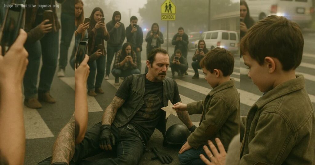 Noah opened his fist. Inside lay a wrinkled paper star he’d drawn months ago. He pressed it to the biker’s chest.