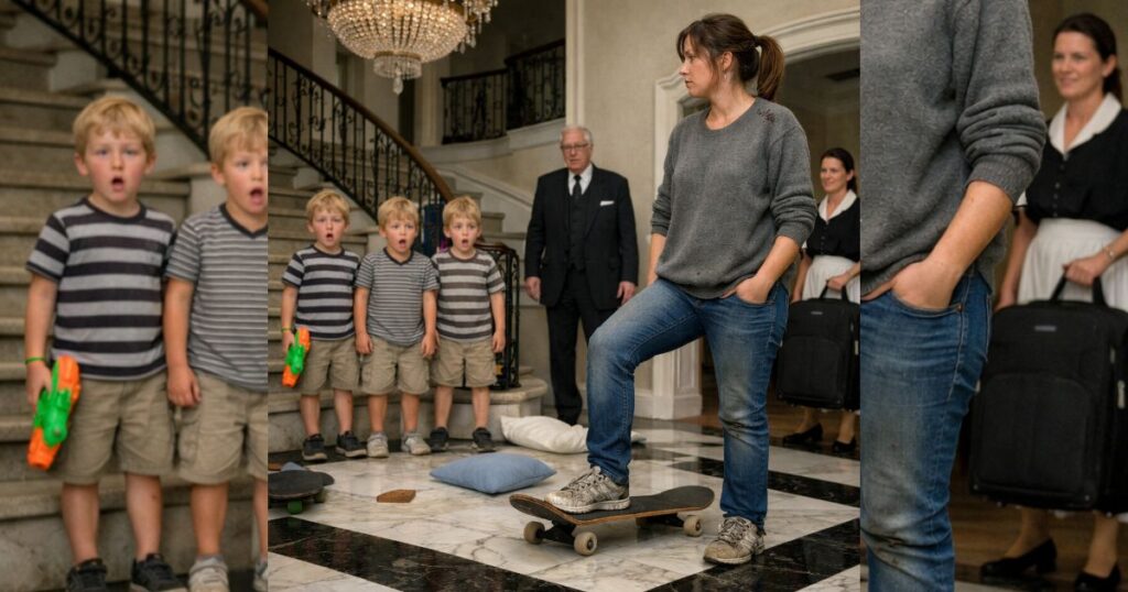 The Billionaire’s Wild Triplets Drove Every Nanny Out in a Day—Until a Small-Town Single Mom Rode a Skateboard Through Their Mansion, Found Their Mother’s Hidden Letters, and Changed Everything