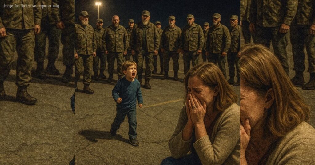 They were marching in place around him in slow, measured steps, boots thudding in rhythm, voices low and rough as they chanted, “Left… right… left… right…” My brain went straight to the worst conclusion: some kind of strange ritual, a group of grown men dragging my silent, vulnerable child into whatever haunted them at night. I fumbled my phone, my thumb hovering over 9-1-1, ready to scream for help.